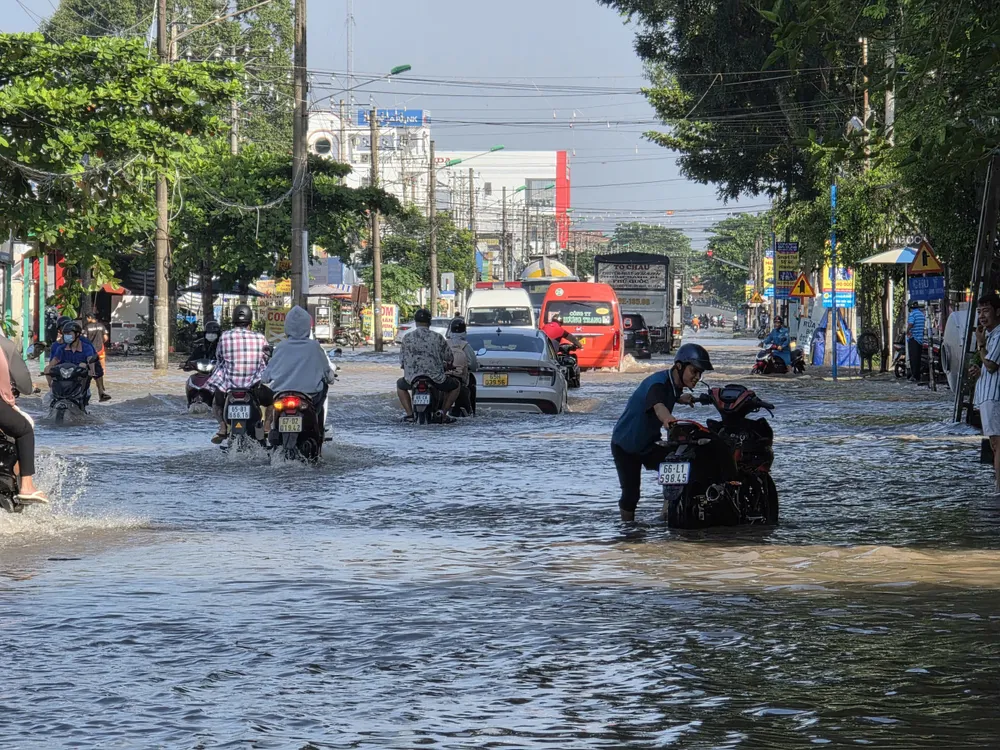 Nước tràn lên đường Cách mạng Tháng Tám, TP Cần Thơ làm nhiều phương tiện chết máy