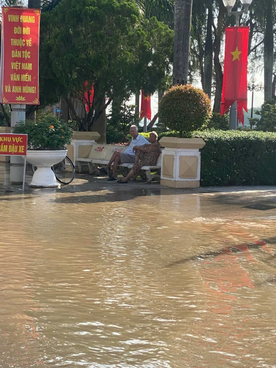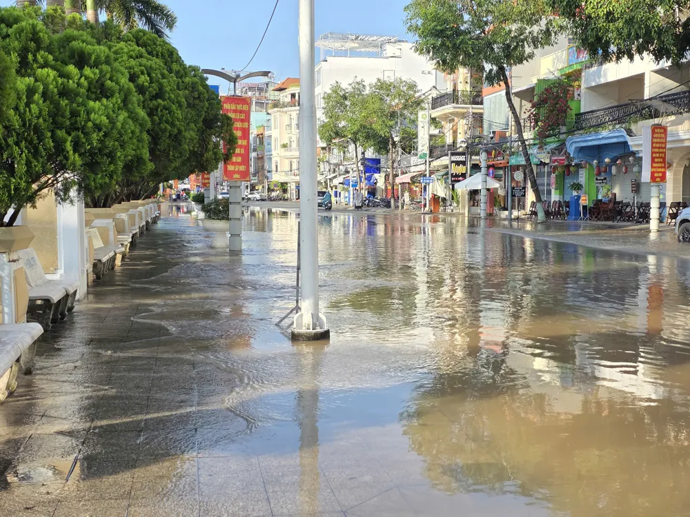 Hồi 7 giờ sáng, nước từ sông Cần Thơ dâng cao, tràn qua bờ kè và bao cát chắn nước, làm khu vực bến Ninh Kiều ngập sâu. Các tuyến đường như Cách mạng Tháng 8, Hai Bà Trưng... nước từ cống trào ngược lên đường.