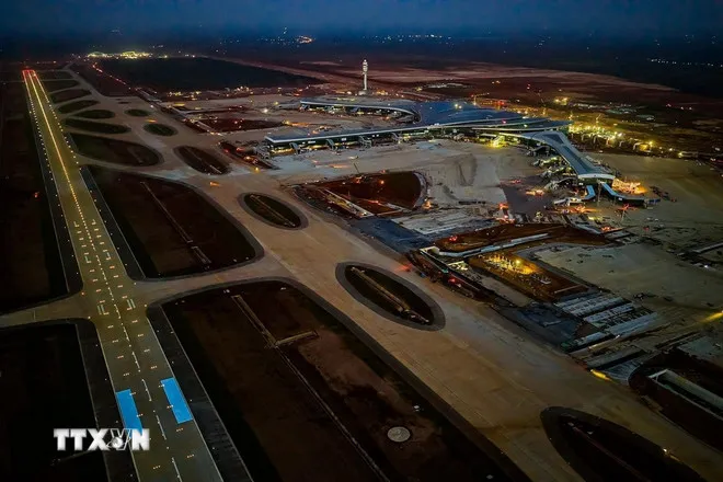 Đường băng số 1 Cảng Hàng không Quốc tế Long Thành đã hoàn thành và sẵn sàng đón chuyến bay chính thức đầu tiên. (Ảnh: Sỹ Tuyên/TTXVN)