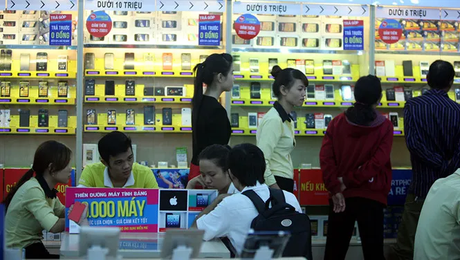 Thực tế trên thị trường, các hệ thống bán lẻ thiết bị di động luôn thu hút khá đông khách hàng. Ngày 6.3 khi chúng tôi ghé qua cửa hàng phân phối của hệ thống bán lẻ Thế Giới Di Động trên đường Cách Mạng Tháng 8 (Q.3, TP.HCM), dù vào giờ nghỉ trưa nhưng lượt khách ra vào vẫn tấp nập.