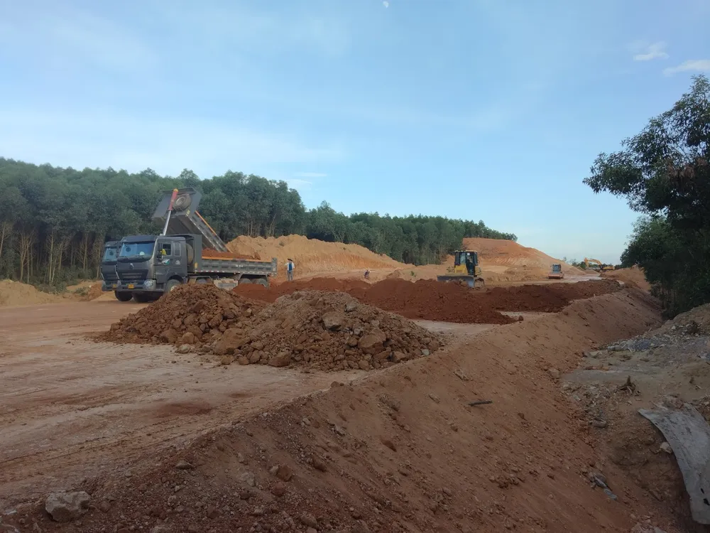 Tại công trường cao tốc Vạn Ninh - Cam Lộ (qua 2 tỉnh Quảng Bình và Quảng Trị) thuộc dự án xây dựng công trình đường bộ cao tốc trên tuyến Bắc - Nam phía Đông, giai đoạn 2021 - 2025, có tổng mức đầu tư 9.919,78 tỷ đồng, do Ban Quản lý dự án (QLDA) đường Hồ Chí Minh làm chủ đầu tư, các nhà thầu huy động hàng trăm công nhân cùng các phương tiện chia thành nhiều mũi để thi công trong dịp nghỉ lễ 2-9.
