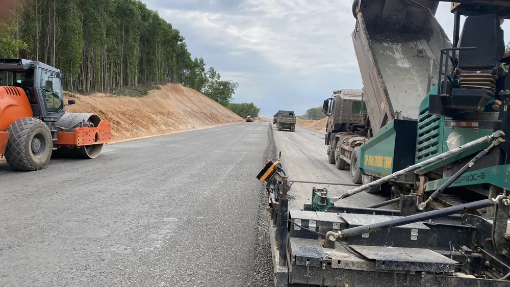 Tại những khu vực mặt bằng được bàn giao liền mạch sau khi khởi công vào đầu năm 2023, các đơn vị thi công nhanh chóng rải thảm nhựa. Một số đoạn khác qua địa bàn các huyện Vĩnh Linh, Gio Linh của tỉnh Quảng Trị vừa được bàn giao mặt bằng, các đơn vị tích cực triển khai bóc phong hóa, đào nền đường, định vị tim cọc, hối hả thi công tạo khuôn đường…