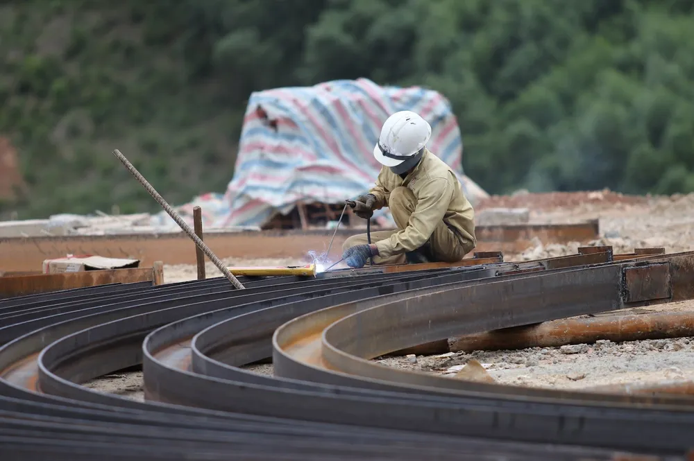 Công nhân đang làm việc trên công trường hầm Đèo Bụt