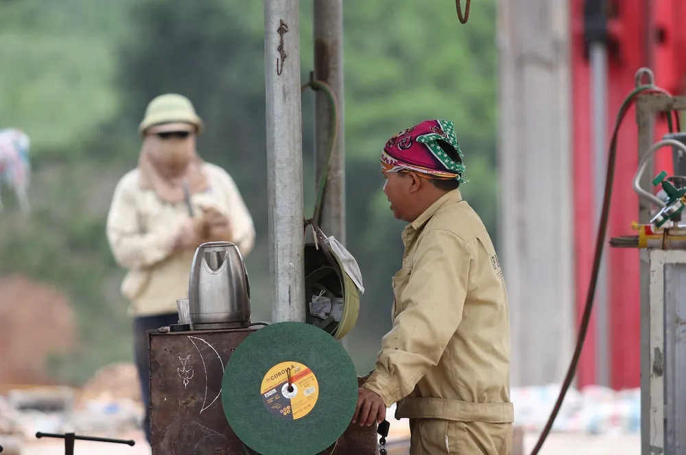 Trong những ngày nghỉ lễ 2-9, mặc dù thời tiết nắng nóng gay gắt nhưng trên công trường các hạng mục dự án thành phần, hàng trăm cán bộ, kỹ sư, công nhân các nhà thầu vẫn miệt mài làm việc không ngơi nghỉ nhằm đẩy nhanh tiến độ theo kế hoạch đề ra.