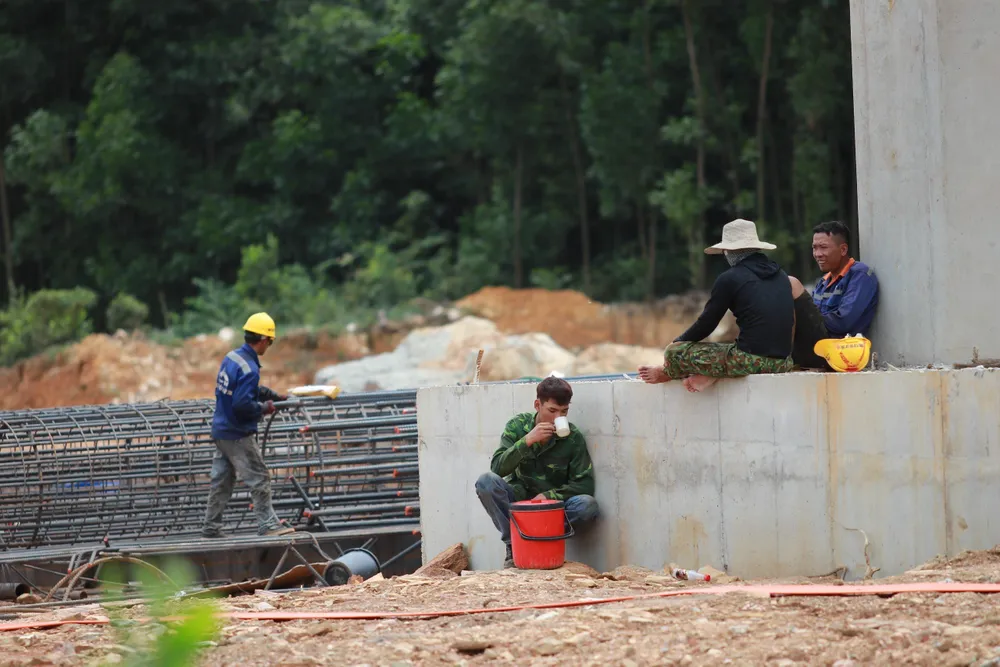Công nhân và các phương tiện máy móc thi công 3 ca/ngày xuyên lễ Quốc khánh 2-9 tại cao tốc Vạn Ninh - Cam Lộ
