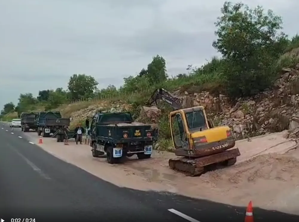 Ngay khi nhận được thông tin, Công ty Đầu tư xây dựng 886 - Thành Nam (đơn vị quản lý tuyến cao tốc Vĩnh Hảo - Phan Thiết) đã bố trí lực lượng cùng hệ thống biển báo để điều tiết giao thông. Đồng thời, đơn vị khẩn trương ngăn dòng chảy, thu dọn đất cát, tạo lối tạm cho xe di chuyển qua khu vực, bước đầu đảm bảo lưu thông một làn.