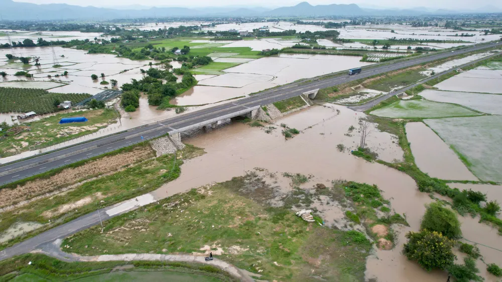 Chiều 6-9, tại khu vực hầm chui và đường gom dân sinh dọc đường cao tốc Vĩnh Hảo - Phan Thiết (thuộc khu vực cầu Sông Thăng, xã Hàm Thuận, tỉnh Lâm Đồng) xảy ra ngập sâu, giao thông bị chia cắt.