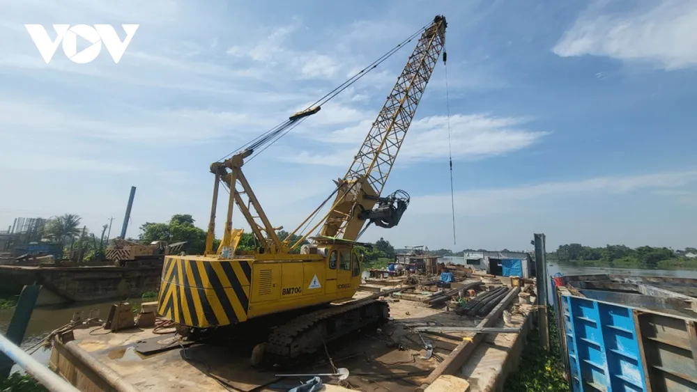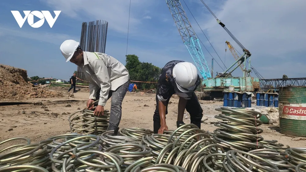 Để đảm bảo tiến độ dự án, các đơn vị đã huy động hơn 100 công nhân miệt mài thi công các hạng mục cầu, đường dẫn. Các máy móc, thiết bị hiện đại được tận dụng tối đa để đảm bảo chất lượng và tiến độ công trình. Công nhân cũng được chia thành nhiều ca để hoàn thành tốt nhiệm vụ.