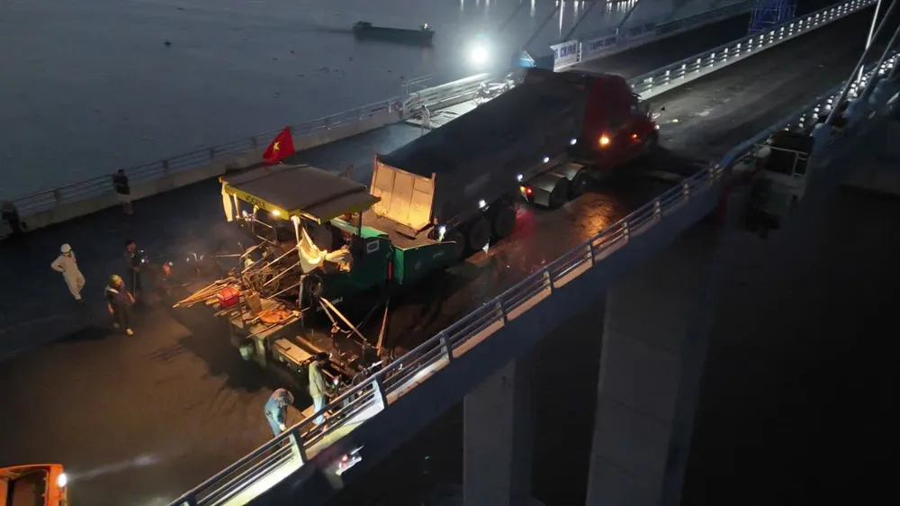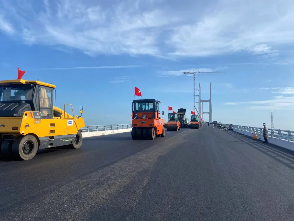 Các đơn vị thi công tập trung thiết bị chuyên dùng, tăng tốc hoàn thiện những hạng mục cuối cùng của dự án cầu Rạch Miễu 2