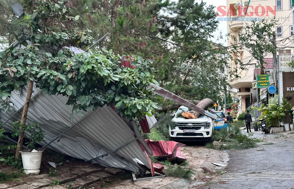 Tương tự, trên địa bàn phường Lang Biang - Đà Lạt, Cam Ly - Đà Lạt cũng ghi nhận các cây xanh bị ngã đổ.