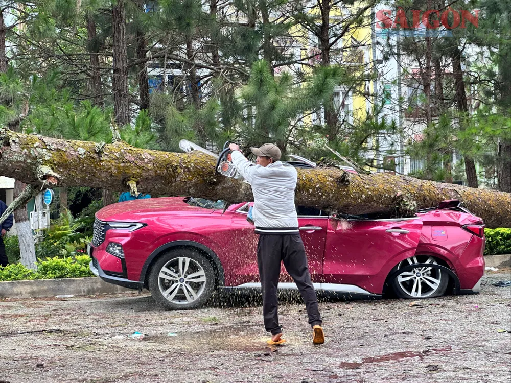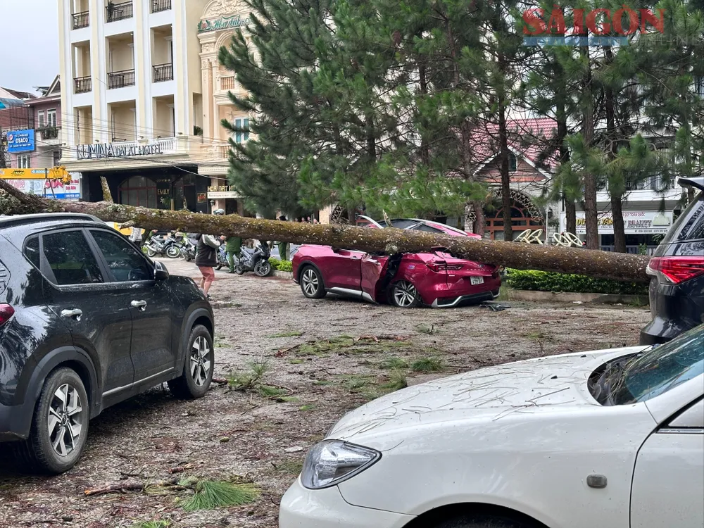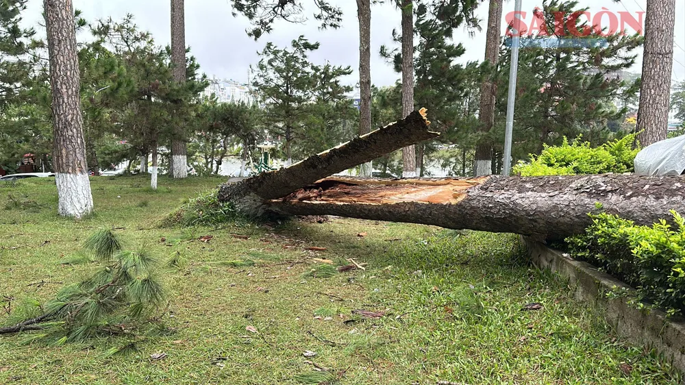 Ghi nhận tại công viên Xuân Hương (tiếp giáp đường Trần Quốc Toản và đường Hồ Tùng Mậu, phường Xuân Hương - Đà Lạt), một cây thông ba lá đường kính gốc khoảng 70cm, cao hơn 10m bị bật gốc đổ xuống công viên. Tại thời điểm trên, trong khu vực này có khoảng 10 xe ô tô du lịch đang đậu.