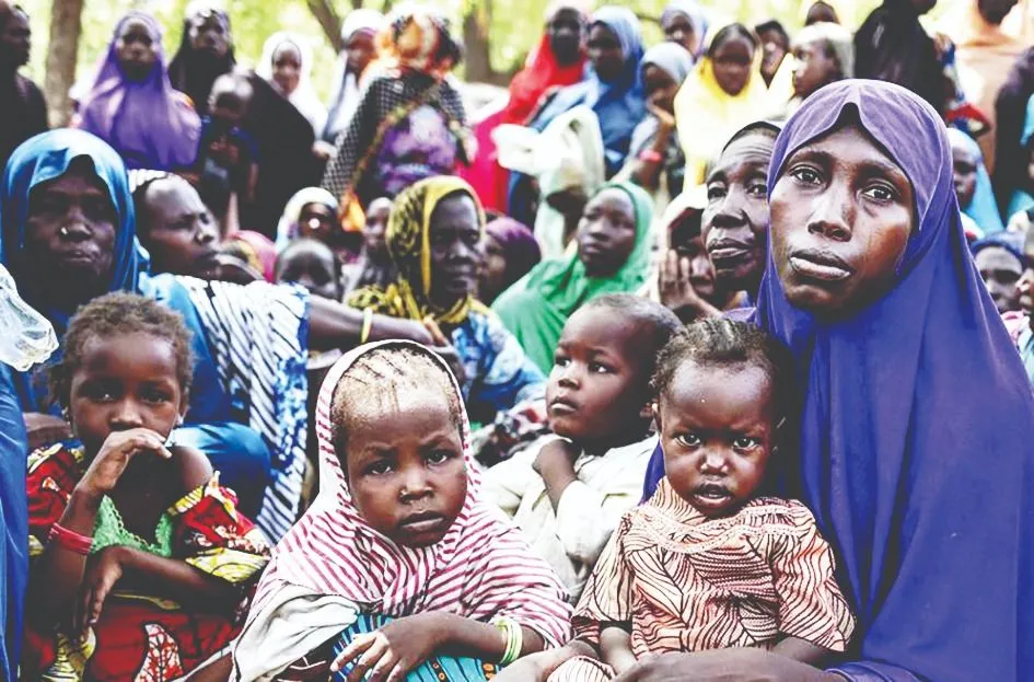 Người sơ tán do chiến tranh ở Nigeria chờ đợi phát khẩu phần ăn. Ảnh: WFP