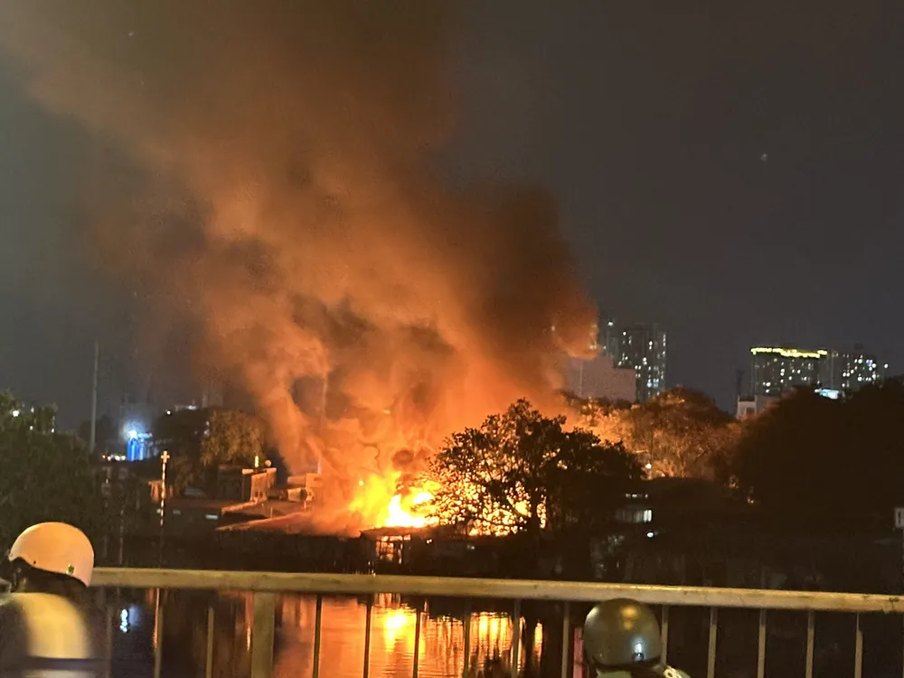 Nguồn tin của phóng viên Báo SGGP tại hiện trường cho biết, ngọn lửa bùng cháy từ xưởng gỗ lan sang ít nhất 3 nhà dân.