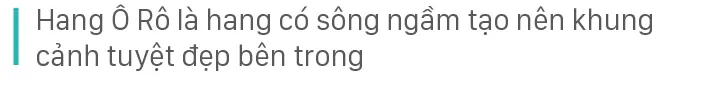 Cửa hang Ô Rô khá rộng lớn, để vào phía trong, du khách phải bơi qua một làn nước gần 20m, sau đó lách qua những lối đi chỉ vừa một người mới bước vào sâu bên trong. Phía trong động khá tối, tất cả mọi người đều phải mang theo đèn và cùng soi về một phía để thấy rõ lối đi. Hang Ô Rô có chiều dài khoảng 3km.