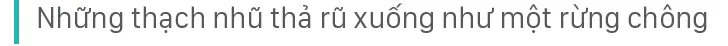 Càng vào sâu động càng rộng ra và đẹp hơn. Những thạch nhũ thả xuống từ trần động đến mặt đất đến vài chục mét, óng ánh như mái tóc người thiếu nữ, hay những măng đá nhú lên từ mặt đất như những ông Bụt sẽ làm du khách trầm trồ. Tất cả tạo thành hệ thống rèm nhũ dày đặc hòa cùng những giọt nước chảy róc rách trên trần hang nhỏ xuống. Khung cảnh huyền ảo như muốn níu chân du khách thả hồn vào khung cảnh nên thơ trong hang Ô Rô.