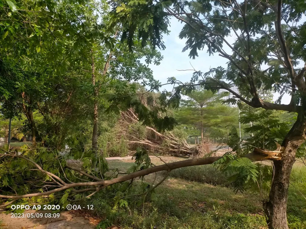 Cây đổ sau cơn mưa chiều 8-5 tại TPHCM. Ảnh: QUỐC ANH