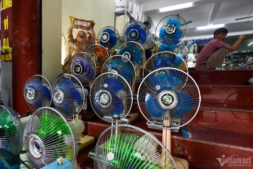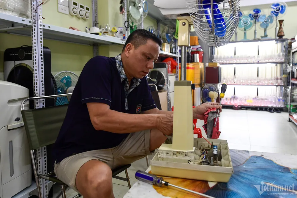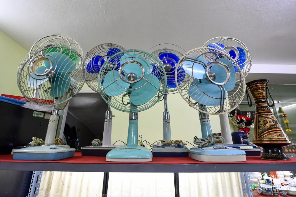 Quạt điện nhiều thương hiệu Toshiba, National, Sanyo,... được các tiểu thương nhập về Việt Nam bày bán cho người có chung đam mê đồ xưa giao lưu. "Khi nhận được hàng chúng tôi phải lau chùi, bảo dưỡng lại một số chỗ thiếu linh kiện. Sau khi làm đẹp có thể bán với giá 2 triệu - 4 triệu đồng/cái", người đàn ông trong ảnh nói.