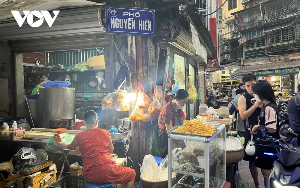 Tại lối vào khu dân cư số 10 (Hai Bà Trưng, Hà Nội), hàng chục hàng quán bày bán tràn lan trên vỉa hè nhỏ hẹp.