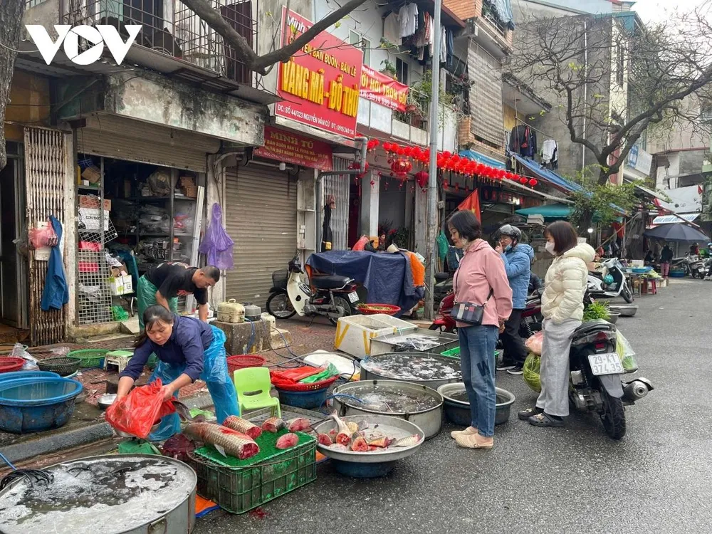 Ghi nhận tại chợ Gia Lâm, từ khoảng 6 giờ sáng, nhiều quầy hàng thịt lợn, thịt bò thịt gà, thủy hải sản, rau xanh... đã hoạt động trở lại. Dù lượng khách không quá đông như những ngày cận Tết nhưng tăng rõ rệt so với mùng 2, mùng 3. Người dân chủ yếu mua bổ sung thực phẩm tươi sống để “đổi bữa” sau những ngày sử dụng nhiều đồ chế biến sẵn.