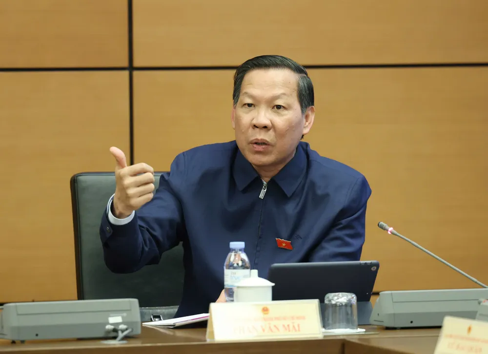 Chủ tịch UBND TPHCM Phan Văn Mãi phát biểu tại phiên thảo luận tổ. Ảnh: QUANG PHÚC