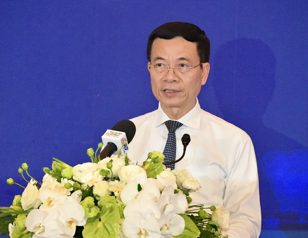 Bộ Trưởng Bộ TT-TT Nguyễn Mạnh Hùng phát biểu chỉ đạo. Ảnh: VIỆT DŨNG