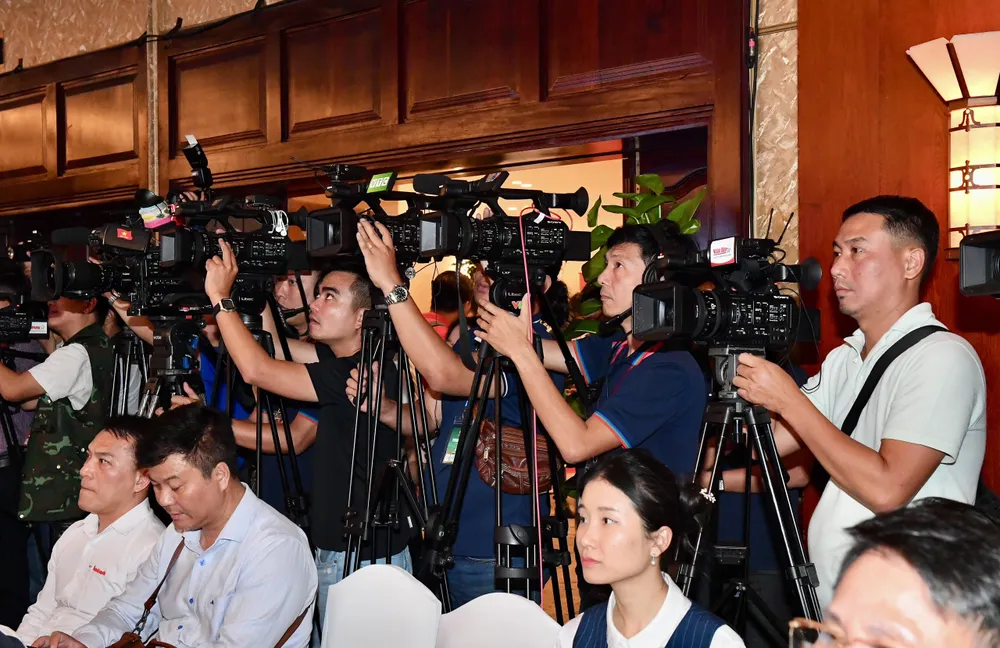 Các phóng viên tác nghiệp tại phiên khai mạc. Ảnh: VIỆT DŨNG