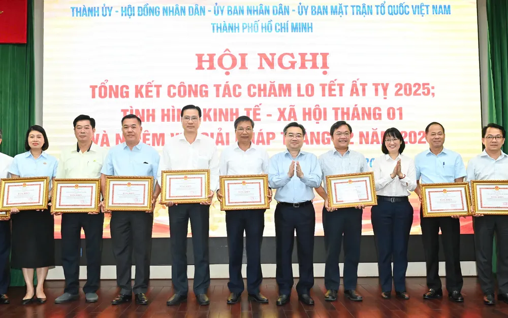 Chiều 5-2, Thành ủy - HĐND - UBND - Ủy ban MTTQ Việt Nam TPHCM tổ chức hội nghị tổng kết công tác chăm lo Tết Ất Tỵ 2025; tình hình kinh tế - xã hội tháng 1 và nhiệm vụ, giải pháp tháng 2.