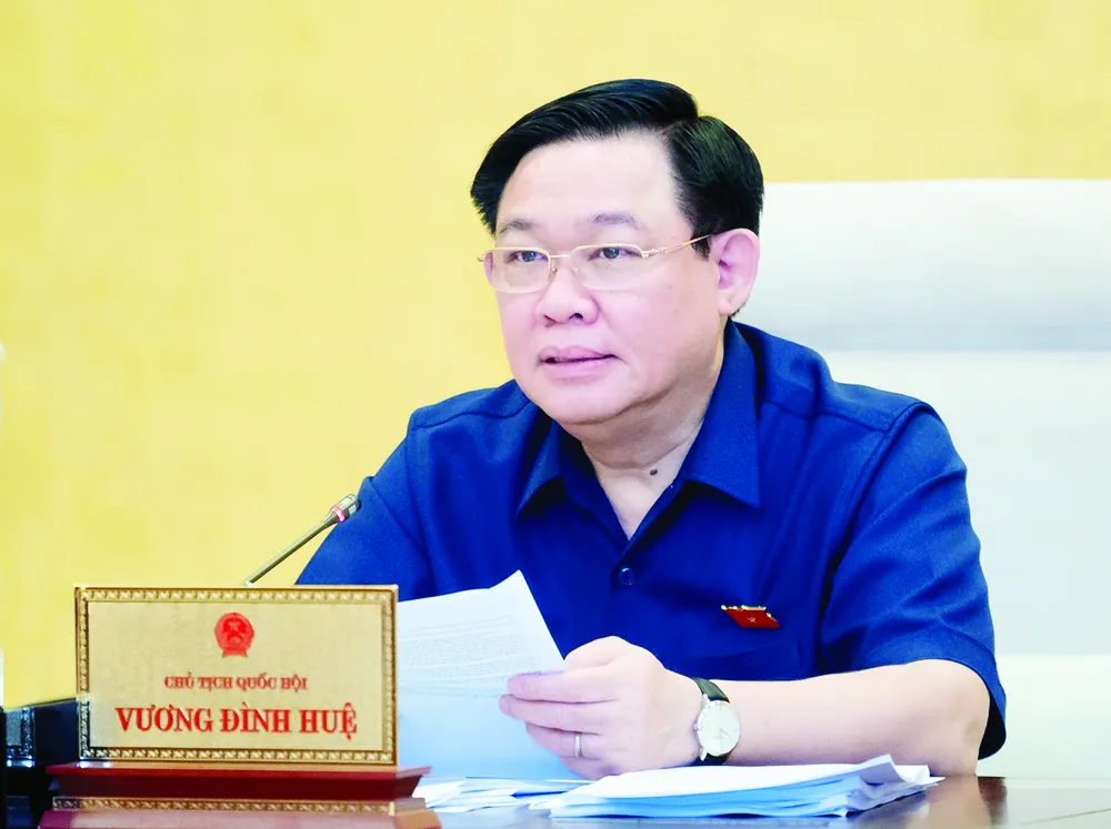 Chủ tịch Quốc hội Vương Đình Huệ phát biểu tại phiên họp Ảnh: VIẾT CHUNG