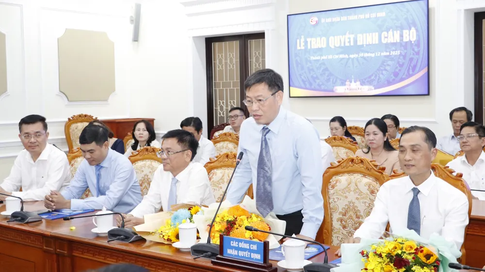Đại diện các cá nhân nhận quyết định, Phó Chánh Văn phòng UBND TPHCM Đặng Văn Định cảm ơn lãnh đạo TPHCM tin tưởng giao nhiệm vụ mới; cam kết nỗ lực, phát huy tinh thần trách nhiệm, đoàn kết, sáng tạo thực hiện các nhiệm vụ được giao.