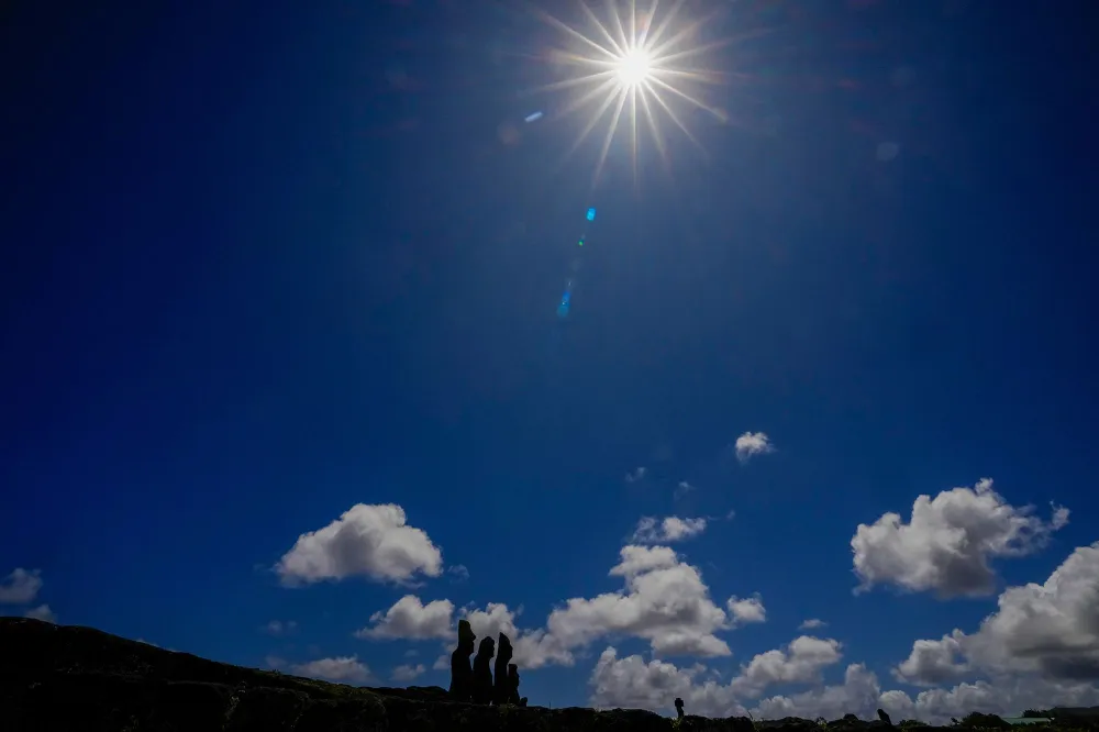 Những bức tượng Moai nổi tiếng của Đảo Phục Sinh được nhìn thấy bên dưới mặt trời trong lúc nhật thực.