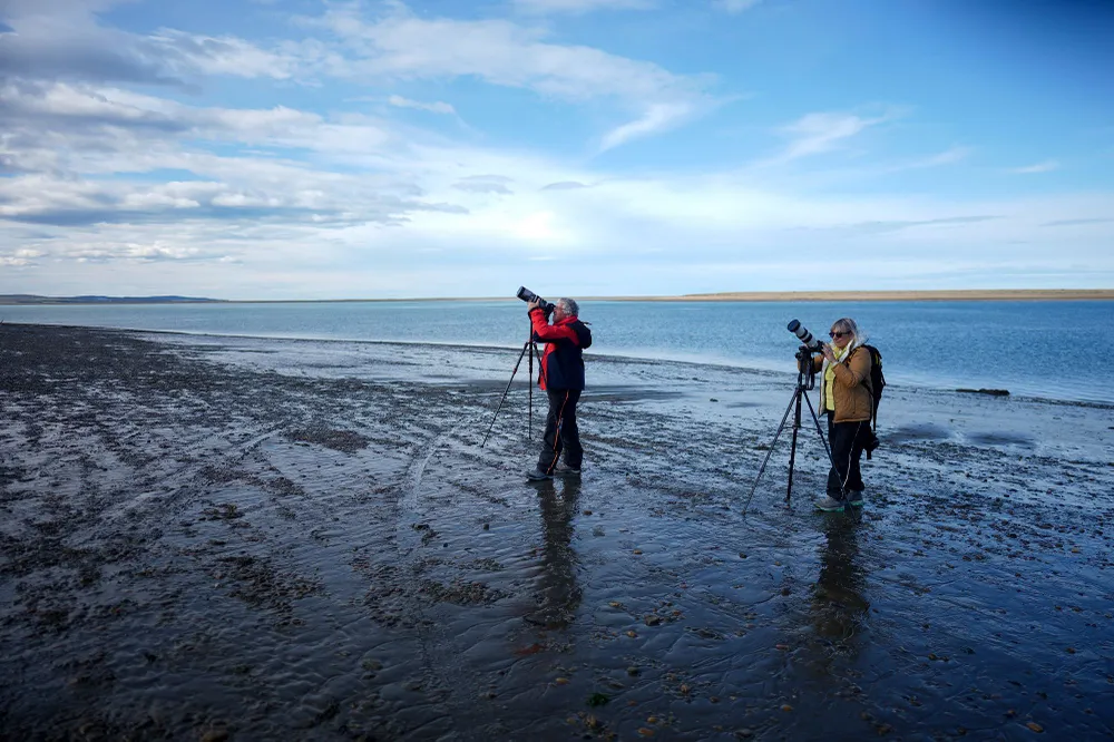 Các nhiếp ảnh gia dựng máy ảnh ở Puerto San Julián.