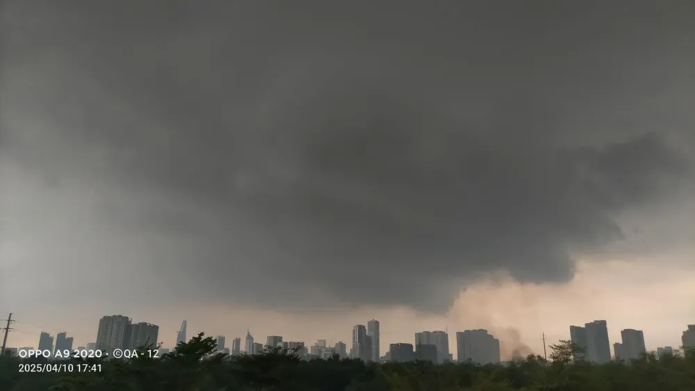 Cơn dông gây mưa trái mùa chiều 10-4 tại TPHCM. Ảnh: QUỐC ANH