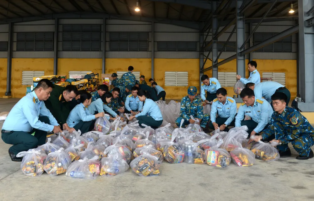 Trung đoàn Không quân 930 tiếp nhận 1.000 suất quà của Quân khu 5, tổ chức đóng gói để vận chuyển đến nhân dân các tỉnh Nam Trung bộ