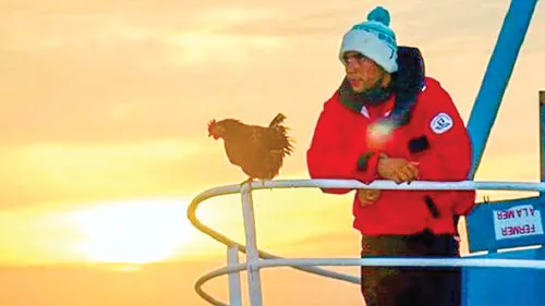 Một anh chàng người Pháp quyết định chọn con gà mái tên Monique làm bạn đồng hành trên chuyến hành trình vòng quanh thế giới bằng thuyền máy. Đôi bạn đã cùng nhau lênh đênh trên biển trong 2 năm. “Ngay từ đầu, tôi đã thấy Monique là bạn đồng hành thích hợp. Khi bắt đầu chuyến hành trình, Monique mới chỉ khoảng 4-5 tháng tuổi và chưa từng rời khỏi quần đảo Canary. Tôi không nói được tiếng Tây Ban Nha còn Monique cũng chẳng… nói được tiếng Pháp, nhưng cả 2 sống rất hòa thuận. Tôi không cần phải chăm sóc nó quá nhiều mà lại có trứng để ăn. Cô nàng thích ứng với cuộc sống trên biển rất nhanh” - Guirec nói. Monique đẻ được trung bình 6 quả trứng/tuần ngay cả trong thời tiết giá lạnh của vùng Greenland, hay trong điều kiện thiếu ánh nắng mặt trời suốt 3 tháng.