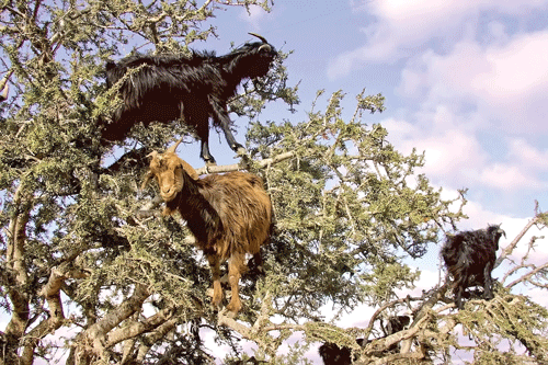 Cây Argan là một lồi cây bản địa ở Maroc (châu Phi), hạt được dùng để chiết xuất tinh dầu, chuyên dùng cho cơng nghệ chăm sĩc sắc đẹp. Tuy nhiên, hạt cây Argan lại được thu hoạch bằng cách nhờ đàn dê Tamri trèo lên cây ăn lá và quả, sau đĩ những người phụ nữ thu thập hạt của cây từ phân của dê để chiết xuất tinh dầu. Chân dê Tamri cĩ cấu tạo đặc biệt, bàn chân chia đơi, mỗi bên cĩ 2 ngĩn kèm cựa cứng đã giúp chúng dễ dàng trèo lên những cây Argan.