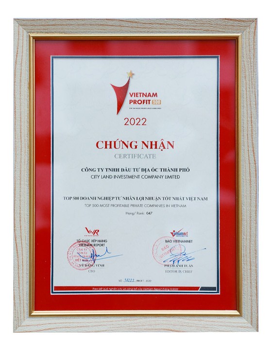 Việc có mặt trong bảng xếp hạng Top 50 Doanh nghiệp lợi nhuận tốt nhất Việt Nam năm 2022 đã chứng minh sự phát triển mạnh mẽ và bản lĩnh của CityLand trước khó khăn, thách thức, đồng thời khẳng định vị thế hàng đầu của thương hiệu CityLand trên thị trường bất động sản Việt Nam. Đây chính là nền tảng vững chắc tạo đòn bẩy cho sự phát triển, bứt phá hơn nữa của CityLand trong thời gian tới.