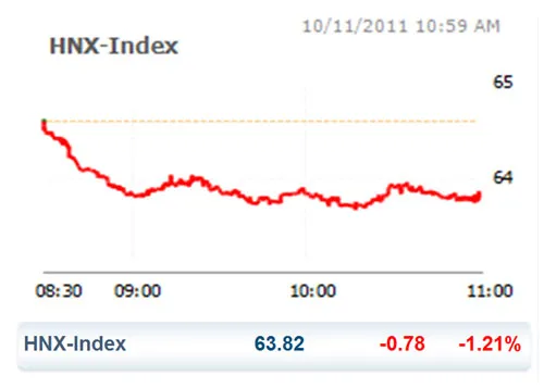 (ĐTTC) - Làn sóng bán tháo của nhà đầu tư khiến cả 2 chỉ số CK cùng lao dốc trong phiên giao dịch sáng nay 10-11. Đặc biệt, HNX Index sau khi nhích khỏi đáy thấp nhất trong 2 phiên, đến hôm nay quay đầu tiếp tục xác lập đáy mới trong lịch sử.