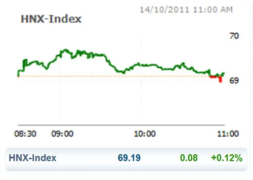 Nhưng đến cuối phiên, chỉ số trở lại sắc xanh với mức tăng nhẹ 0,08 điểm (tương đương 0,12%) lên 69,19 điểm.