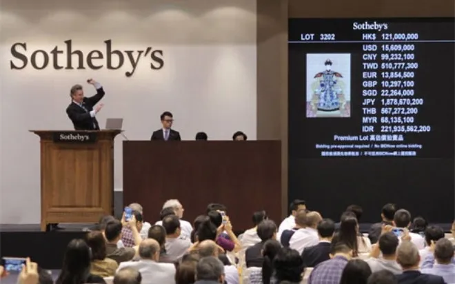 Trong một cuộc đấu giá do Sotheby’s tổ chức ở Hồng Kông cách đây ít hôm, số tiền thu về đạt mức 342 triệu USD, cao hơn 16% so với dự báo ban đầu. Trong đó, bức vẽ một nhân vật hoàng gia Trung Quốc của một họa sỹ người Italy đã được bán với giá 17,6 triệu USD.