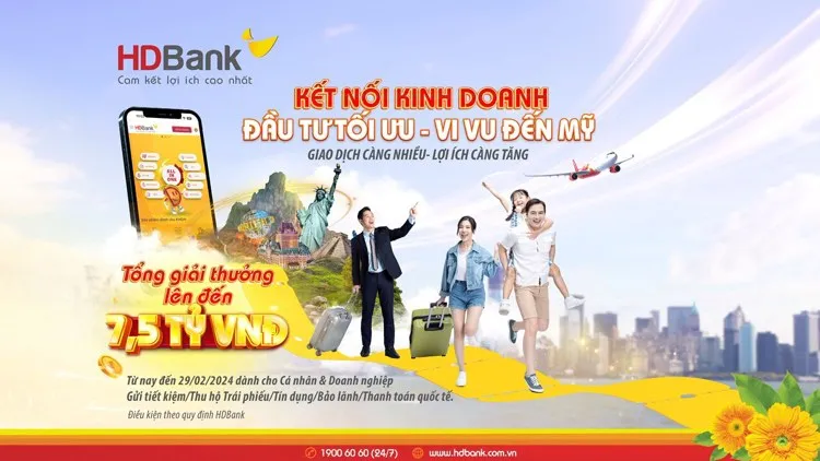 Đối với khách hàng cá nhân, thông qua chương trình “HDBank đồng hành - gắn kết”, HDBank sẽ dành 50 chuyến du lịch Mỹ cho khách hàng trên cả nước có giao dịch tiền gửi và các dịch vụ khác thỏa mãn điều kiện của chương trình, trong thời gian từ 01/9/2023- 29/02/2024.