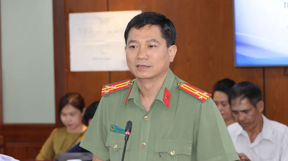 Thượng tá Lê Mạnh Hà thông tin tại họp báo