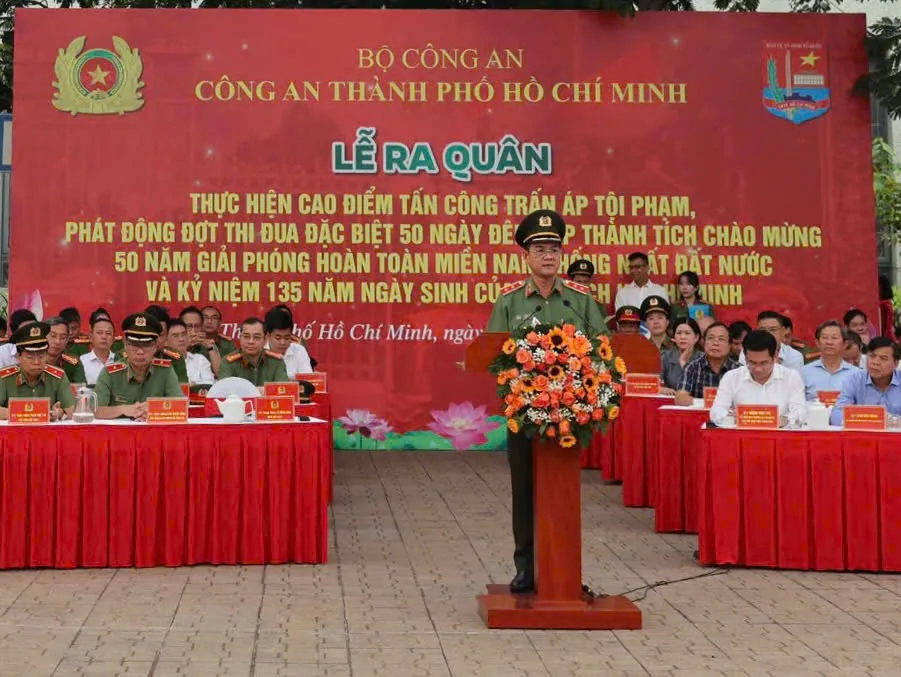 Phát biểu lễ ra quân, Trung tướng Lê Hồng Nam, Giám đốc Công an TPHCM cho biết, thời gian qua công tác đấu tranh phòng chống tội phạm có những chuyển biến mạnh mẽ, góp phần kiềm chế, kéo giảm tội phạm.