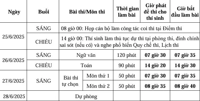 Lịch thi dành cho học sinh dự thi với đề thi của chương trình giáo dục phổ thông cũ