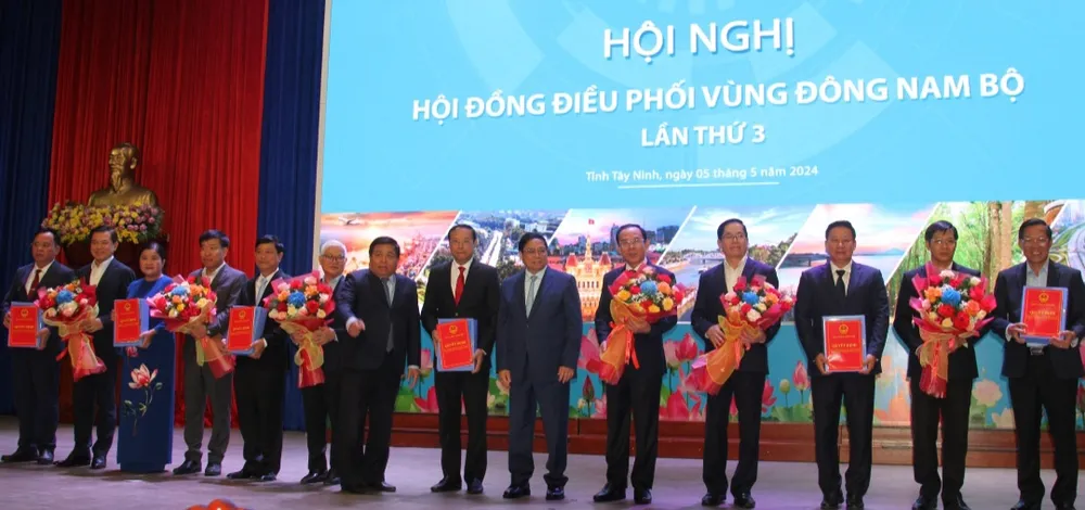Thủ tướng Phạm Minh Chính gửi lời chúc mừng, hỏi thăm của Tổng Bí thư Nguyễn Phú Trọng đến lãnh đạo, người dân vùng Đông Nam bộ. Thủ tướng nhấn mạnh, việc phê duyệt Quy hoạch vùng Đông Nam bộ có ý nghĩa rất quan trọng, trong đó sẽ rà soát lại các công việc, đánh giá khó khăn, vướng mắc, cách khắc phục để đưa kinh tế vùng phát triển nhanh, bền vững.