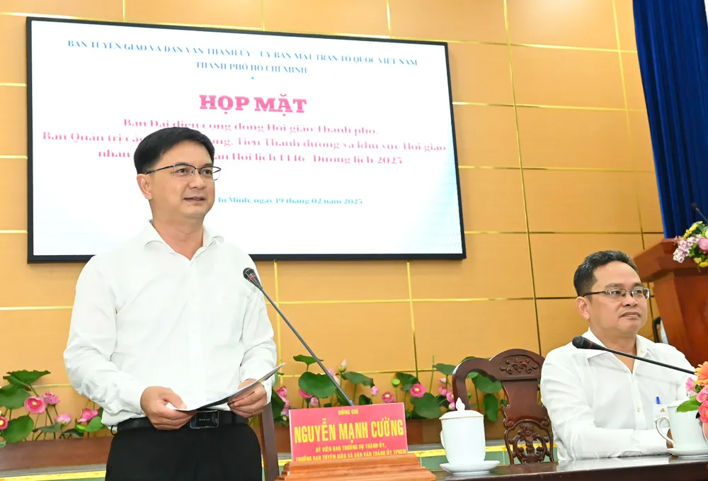 Dự buổi họp mặt có ông Nguyễn Mạnh Cường, Ủy viên Ban Thường vụ Thành ủy, Trưởng Ban Tuyên giáo và Dân vận Thành ủy TPHCM; ông Trần Xuân Điền, Phó Trưởng Ban Tuyên giáo và Dân vận Thành ủy TPHCM; ông Phạm Minh Tuấn, Phó Chủ tịch Ủy ban MTTQ Việt Nam TPHCM.