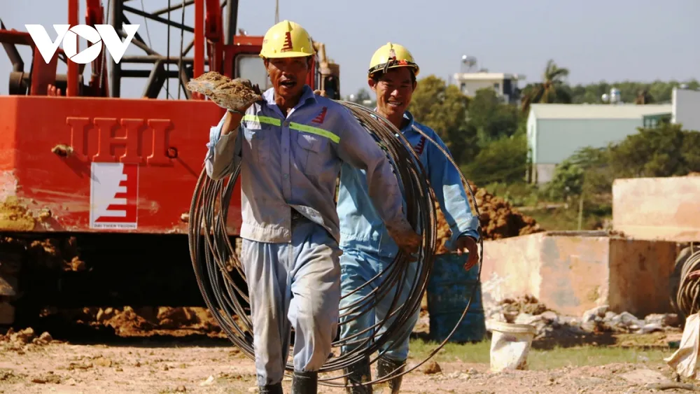 Dưới cái nắng gắt nhưng công nhân ai cũng phấn khởi vì có việc làm ổn định và được làm công trình trọng điểm (Ảnh: TL)