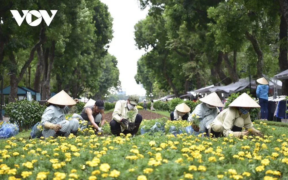 Bên trong công viên Thống Nhất được trồng thêm hoa nhằm tô đẹp cảnh quan.