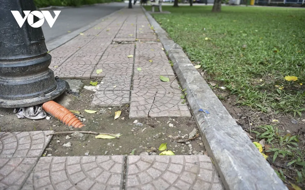 Vỉa hè của công viên đã có chỗ xuống cấp, nứt vỡ.
