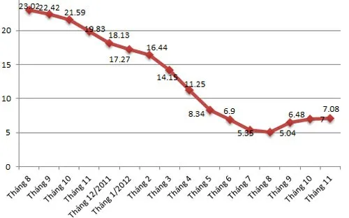 Xét trong các so sánh ngắn hạn với tháng trước, tốc độ tăng của tháng 11 giảm gần bằng một nửa so với tốc độ tăng của tháng 10 là một sự đột biến, hiếm gặp trong dãy số liệu từ năm 1999 trở lại đây, bởi thường mức tăng của tháng 11 luôn cao hơn mức tăng của tháng 10.