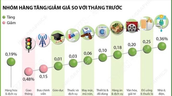 Không những thế, giá một số mặt hàng lương thực, thực phẩm, đồ uống, mặt hàng may mặc có thể tăng cục bộ vào một số thời điểm lễ Tết, giao mùa hoặc do ảnh hưởng của bão lũ, thời tiết bất lợi.